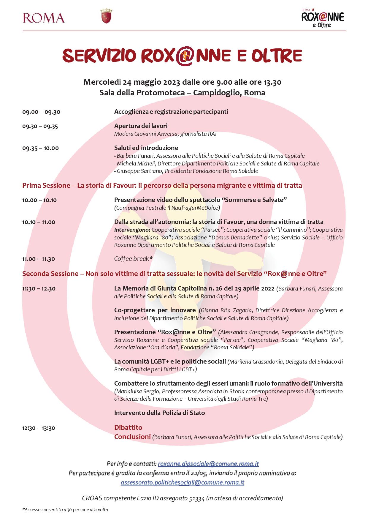 Il Progetto Roxanne del Comune di Roma insieme alle realtà coinvolte nella lotta alla tratta e all’accoglienza delle vittime